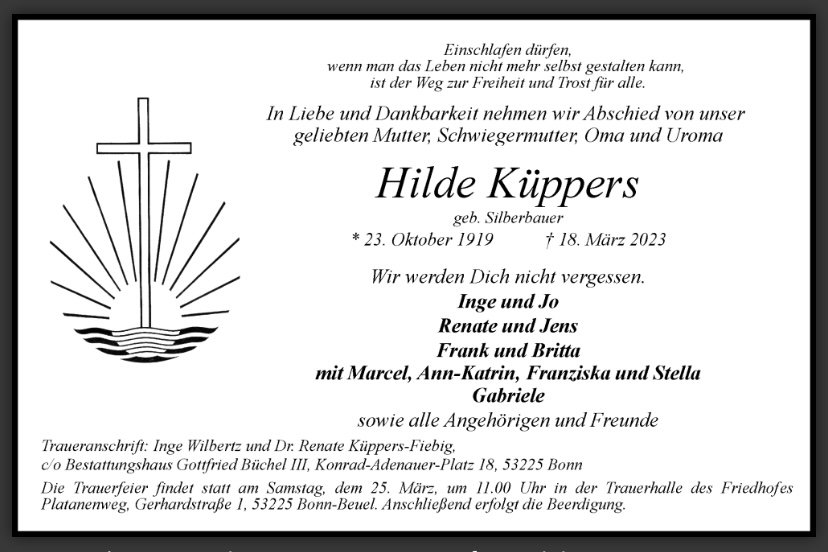 geboren am 23. Oktober 1919 in Tübingen gestorben am 18. März 2023 in Bonn